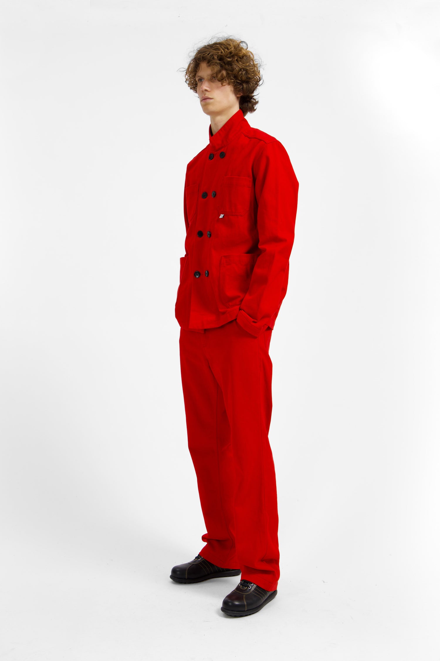 The design of our suits is minimalistic. All our suits are made out of 100% cotton and consist of a jacket and pants. They are unisex and have our signature 4 patch pockets design. Durable, made for everyday wear, fit all gender and age, from XXXS to XXL.